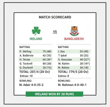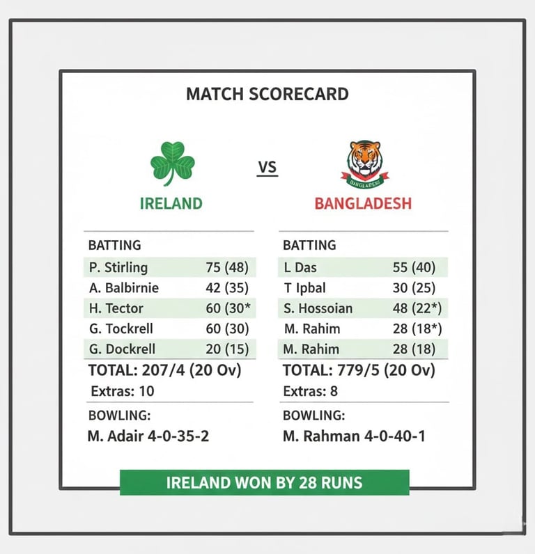 Ireland Cricket Team vs Bangladesh National Cricket Team Match Scorecard – Latest Updates, Highlights & Full Analysis